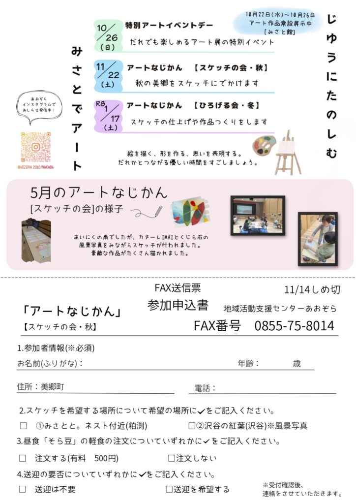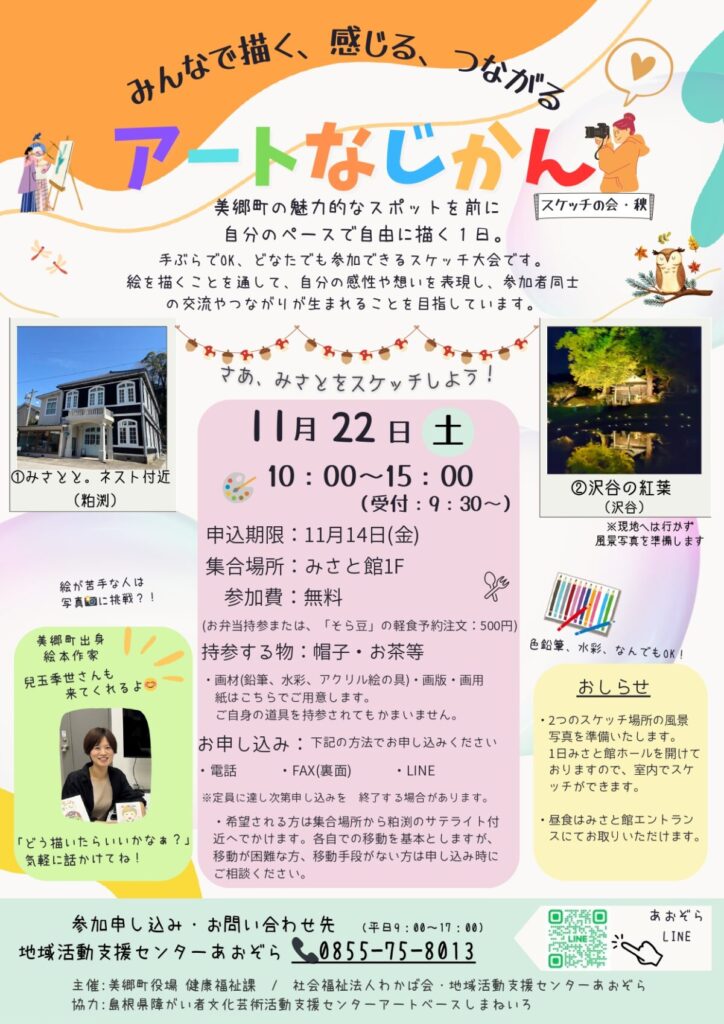 あおぞらのお知らせ(^^)/🍁秋のアートイベント『アートなじかん~美郷町スケッチ会』