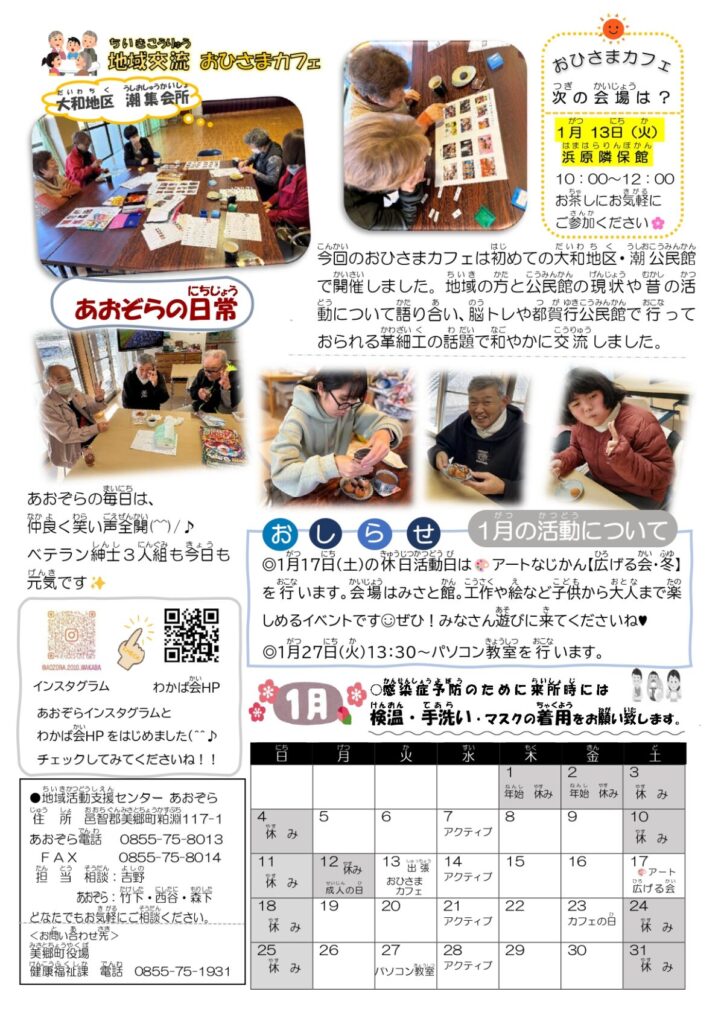 今月のあおぞら通信では、大田市の地域活動・健康支援センター「えーる」さんとの交流会や
