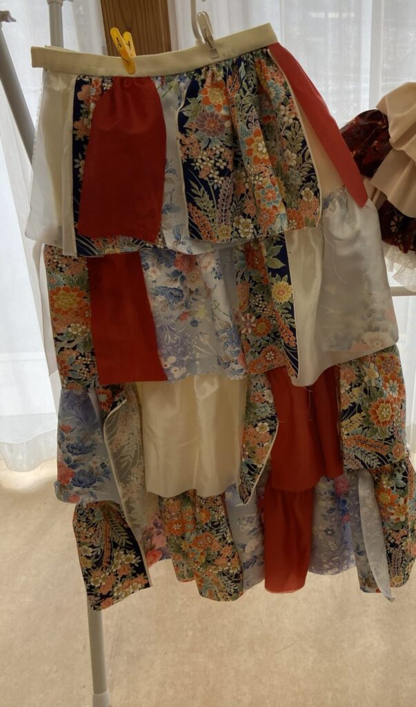 アート展のイベントをきっかけに、地域の“手芸好き”が集まる「ちくちくの会」が始まりました。着物をほどき、フリルスカートやワイドパンツへと生まれ変わらせる作業が進んでいます。
