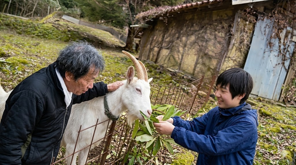 社会福祉法人わかば会・邑智園では、地域の皆さまの温かいご協力により、利用者の皆さんが山羊とのふれあいを楽しむ活動を続けています。
