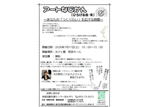 お知らせ今月のあおぞら通信では、「みさとと。あーとな わたしたち 2025」美郷町アート展や、賑わいあふれたアートイベントの様子をお届けします。 みなさんの個性が輝き、笑顔広がる素敵な時間となりました。 また、現在進行中の着物リ...